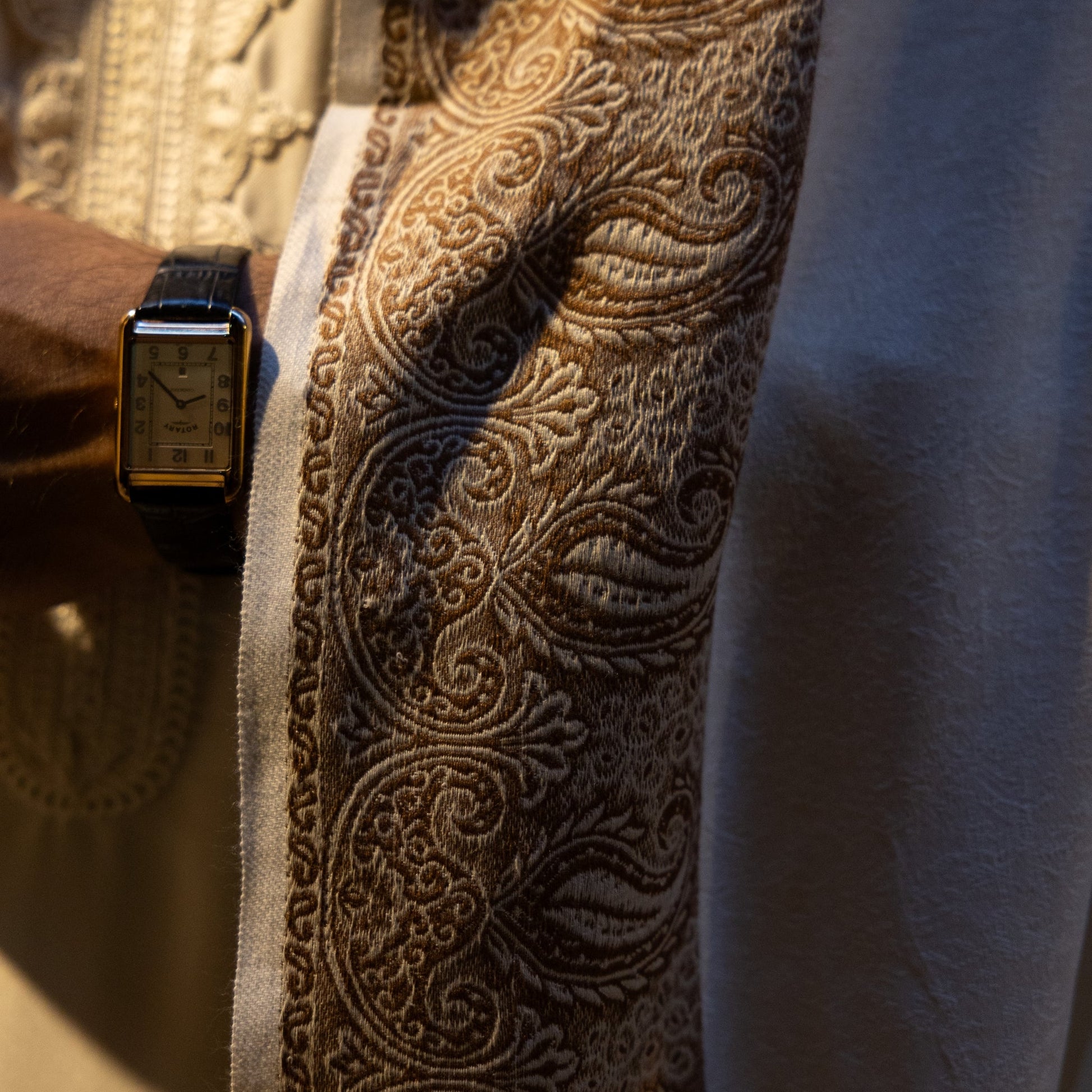 Step into sophistication with our exclusive cotton blend Kashmiri shawl, a timeless accessory steeped in tradition and elegance. The shawl's design is a nod to tradition, meant to be gracefully draped over one or both shoulders, adding a touch of elegance and sophistication. The cotton blend fabric offers a delicate touch against the skin, providing not only a luxurious feel but also lightweight comfort. This model comes larger allowing a wrap-around style.